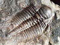 三葉虫は、古生代のカンブリア紀から同じく古生代の末期ペルム紀まで生息していた。数字でいうと約5億5千万年前から約2億5千万年前までとなる。 海生の節足動物で、海底を歩いたり海中を泳いだりしていたと考えられている。保存状態のいい完全な化石で見ると分かりやすいが、三葉虫の体は、縦に3つに分かれていて、これが名前の由来にもなっている。また多数の体節があって、各節に一対の肢がある。 三葉虫はそれだけで綱を形成する大きなグループで多くの種類が存在する。化石は地球上の広範囲に分布し、しかも短い期間で形が変化していることから、アンモナイトなどとともに、地質の年代推定にも利用される(示準化石) カンブリア紀にもっとも繁栄し、古生代の代表的生物といえるほど化石の多く見つかる三葉虫だが、中生代には生き残ることができなかった。 三葉虫を消し去ったのは、ペルム紀末におこった地球生物史上最大の大量絶滅。全生物種の9割以上が絶滅したと考えられている。 |